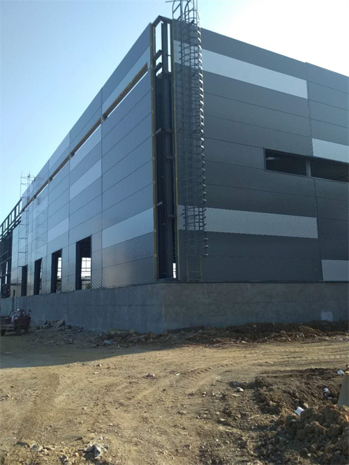 工程概況:144m*84m*10m,墻面采用V1000型新型板材施工,外墻無(wú)明釘外露,保溫效果及防雨水性能更好。
